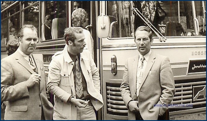 Deze foto is eind april 1974 gemaakt op de parkeerplaats achter het bureau van de Verkeersgroep Nijmegen aan de van Schayk van Mathonsingel te Nijmegen. Dat jaar kreeg H. Ynema Commandant Verkeersgroep Nijmegen een Koninklijke onderscheiding uitgereikt De personen op de achtergrond zijn mogelijk allemaal groepscommandanten van het District Nijmegen. Links op de foto staat de verkeersgroep (de wit petten) opgesteld. Vooraan links staat Jan Janssen in het midden Henk Jansen en rechts J.B. Krosenbrink die op dat moment plaatsvervangend groepscommandant was.