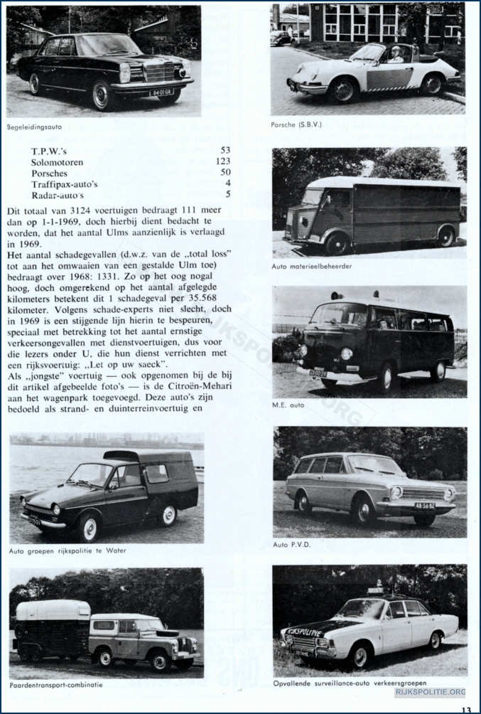 Eind jaren zestig vond er een standaardisering plaats en werden er veel voertuigen aangeschaft. Onderstaand en overzicht van het het wagenpark op 1-1-1970. Bron: Korpsblad september1969.