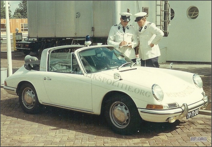 Rinse Hiddinga met collega naast de 912 targa, 19-71-DU, Alex 12.73.