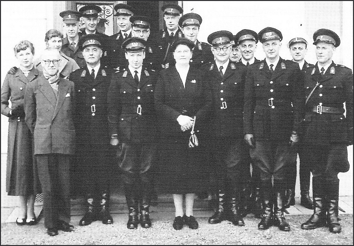 Groep Herwen en Aerdt in de jaren zestig. Voorste rij v.l.n.r. J.A Vedder, P. van Veen, A. Breure, Burgemeester J.N.M. Daalderop, H.F.A. van Zelst, Districtscommandant Doetinchem Lt. Vogel.