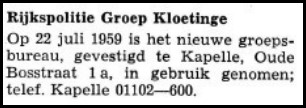 | Groepsbureau Kapelle | Oude Bosstraat 1a Kapelle | 22-7-'59 |